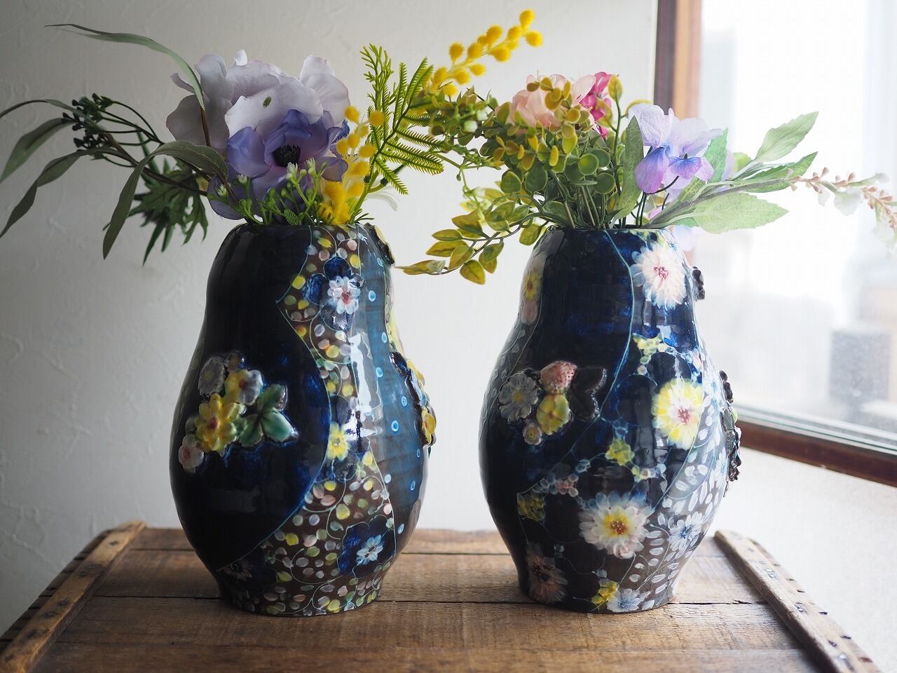 ・全て手作業で制作している為、若干のサイズ違いや僅かなガタつき、ゆがみ、ピンホール、黒点、色ムラ等がある事がございます。