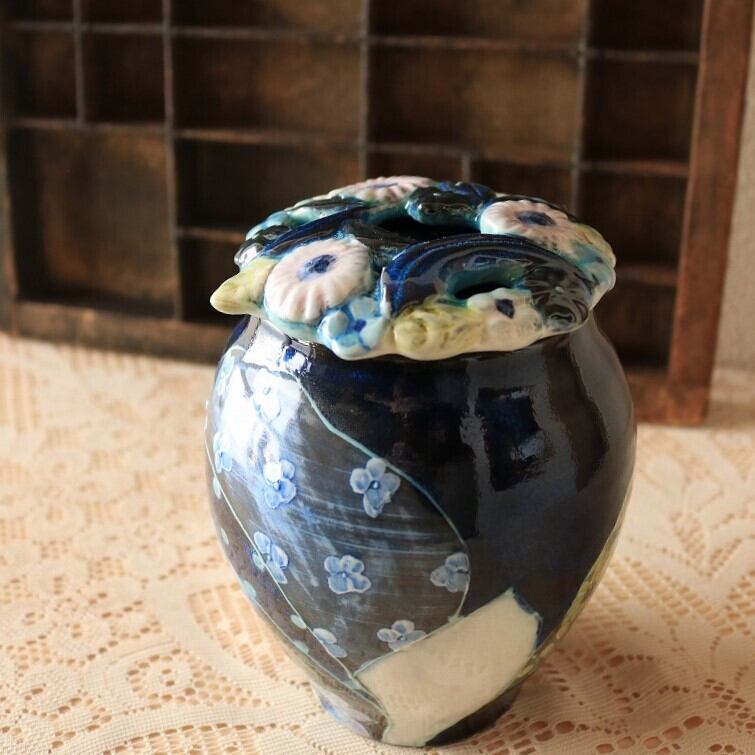 蓋には穴が開いていますので、剣山のように穴にお花を挿してお使いください。