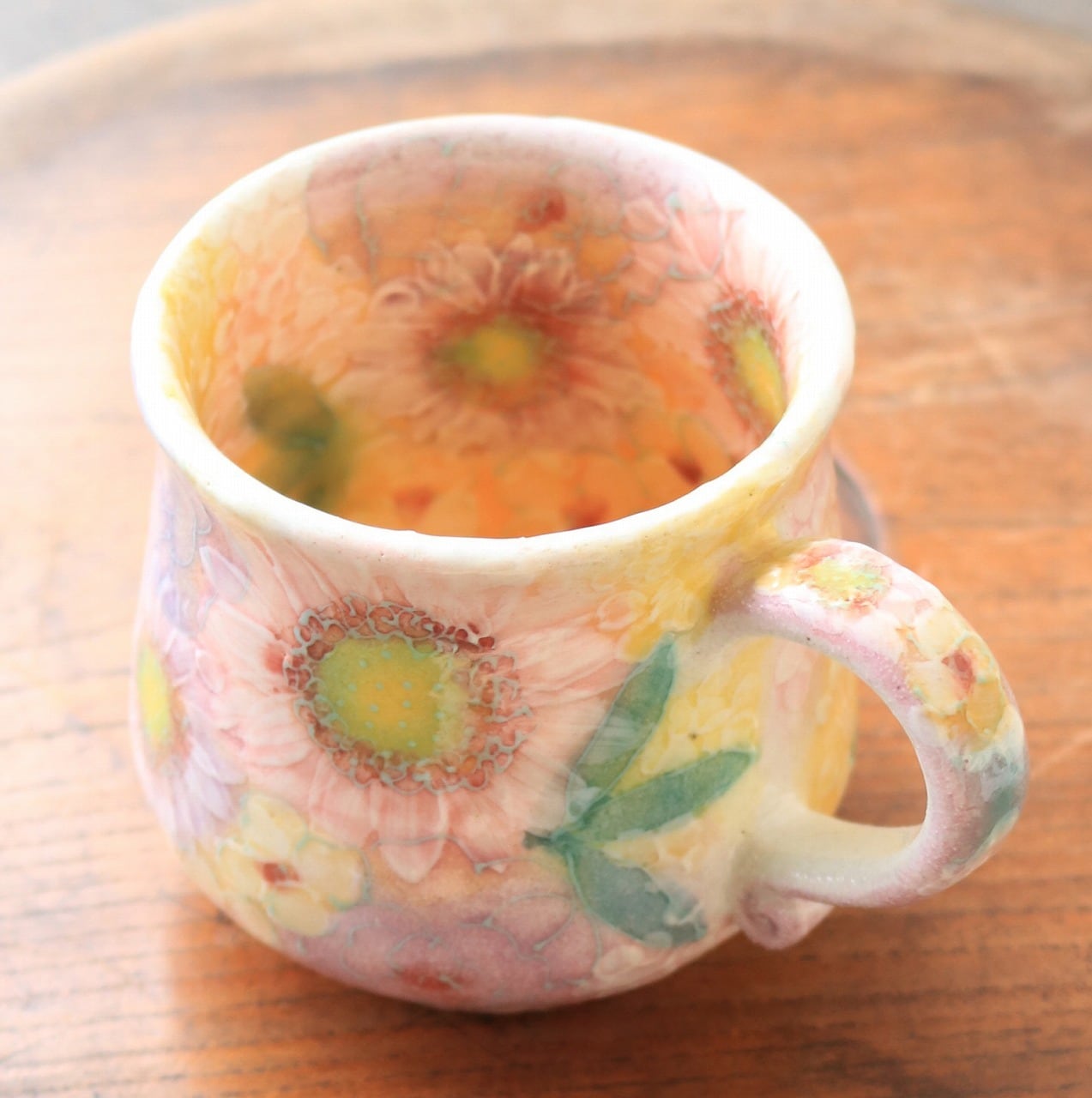 野村晃子 花柄どっしりマグ【ももいろひまわり】