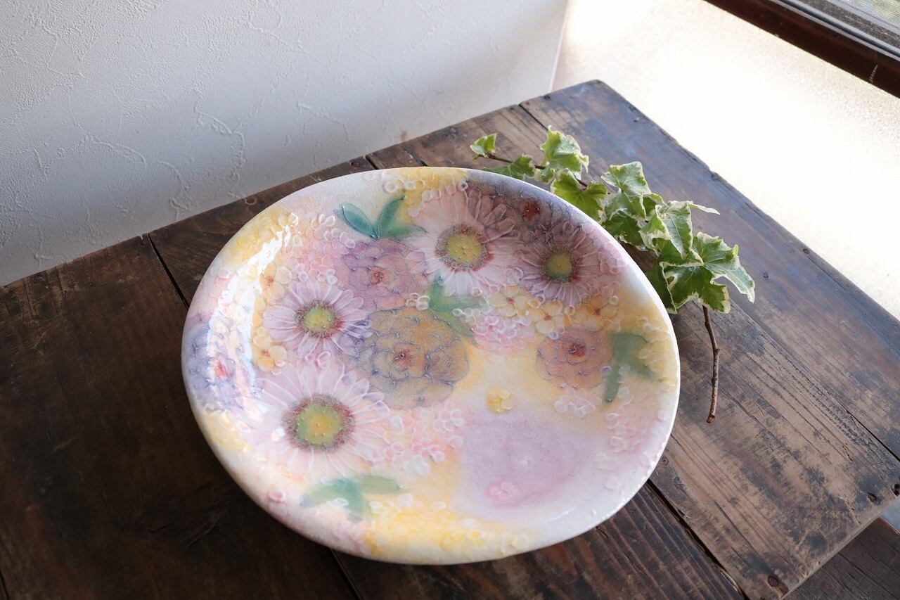 野村晃子 花柄ディナー皿【ももいろひまわり】