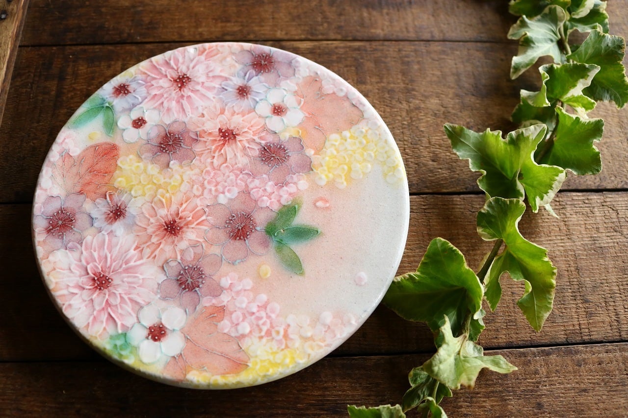 美しい花柄が描かれたおもてなしにぴったりフラットプレート。
