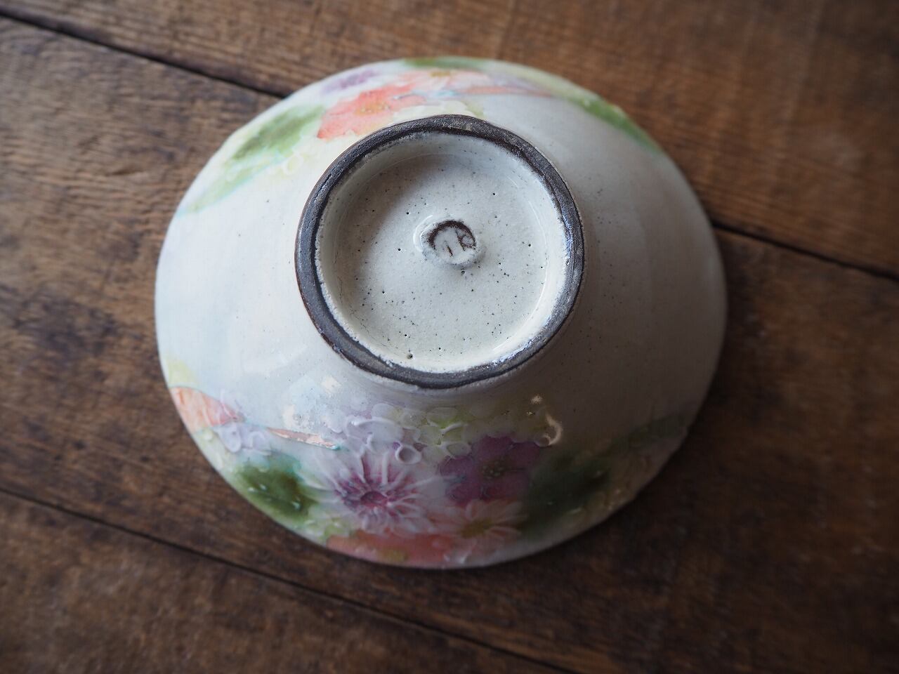 野村晃子 楕円小鉢【くれない色のブーケ】