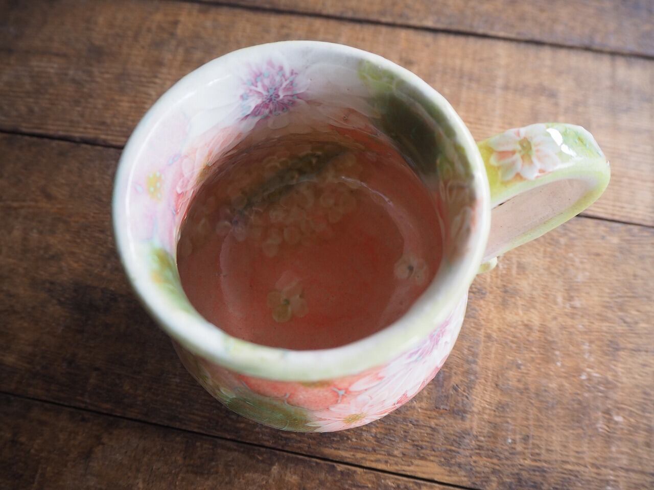 野村晃子 花柄どっしりマグ【くれない色のブーケ】