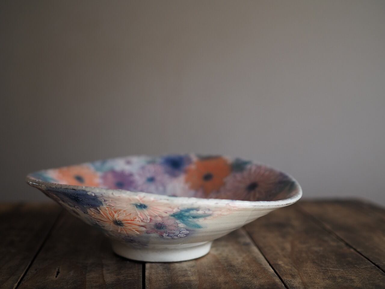 野村晃子 楕円盛鉢【ピンクコスモス】