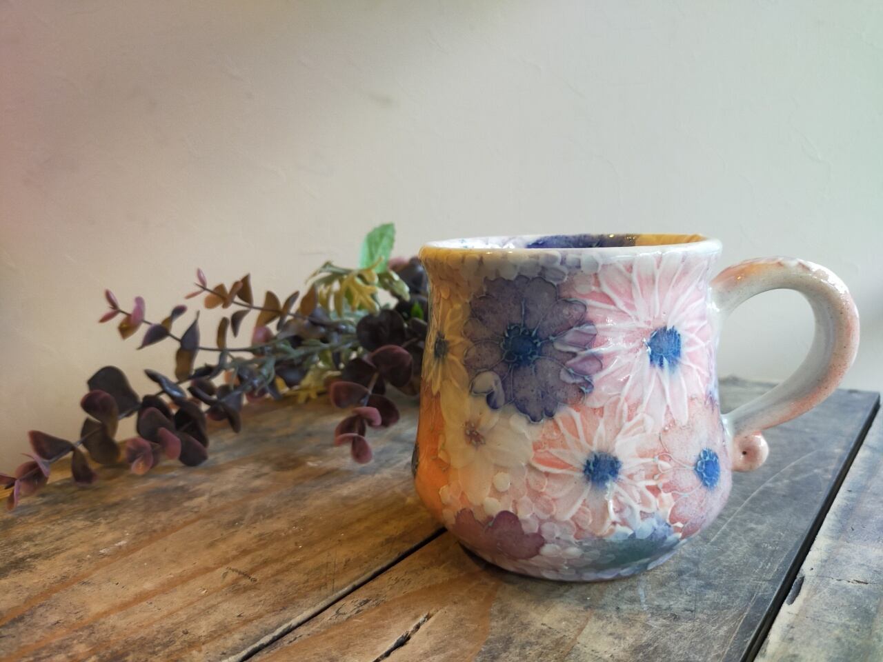 カラフルで、華やかな花柄の人気のマグカップシリーズです。