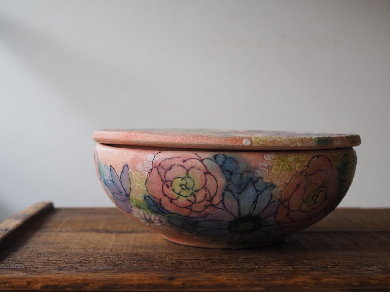 野村晃子 おもてなし丸箱【ピンクポピー(マット釉)】(大)