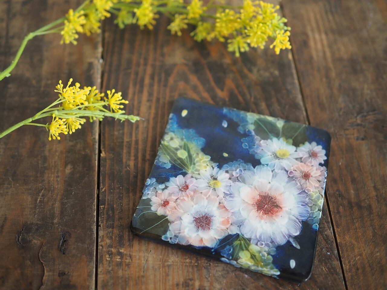 野村晃子 花柄銘々皿【牡丹とミモザ】