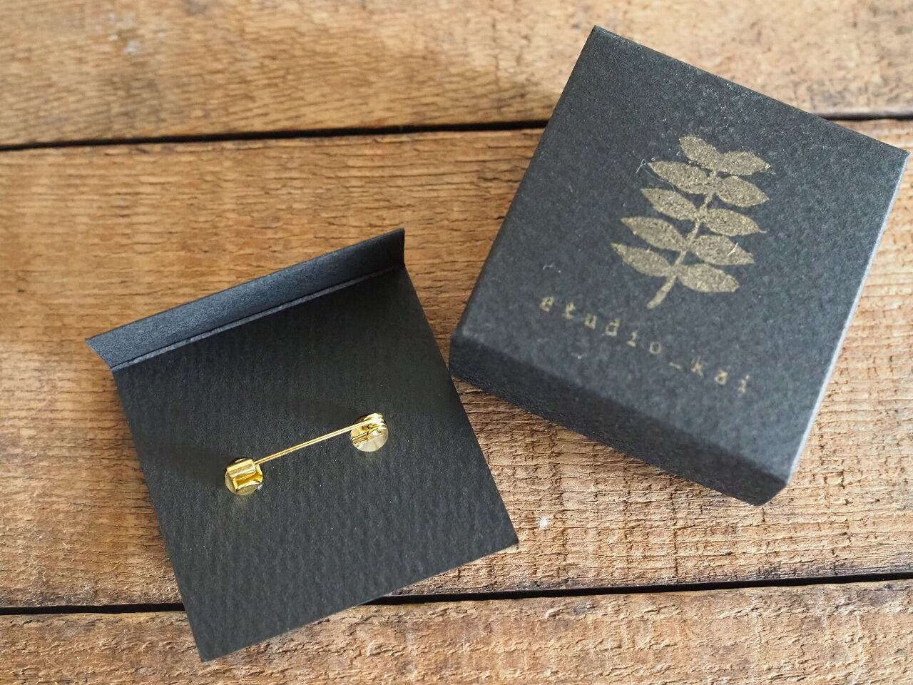 色の異なる土を組み合わせて模様を作る"練込み"技法を使って作られたブローチ